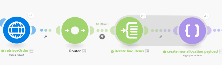 Using an iterator and JSON aggregator can create the correct structure for the new array, but since the “allocations” array only had 1 element, it doesn’t work. How can I do something like a for loop in Make.com based on the “quantity” field?