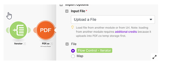 - Use AI Invoice Parser and select Upload File as the input type.
