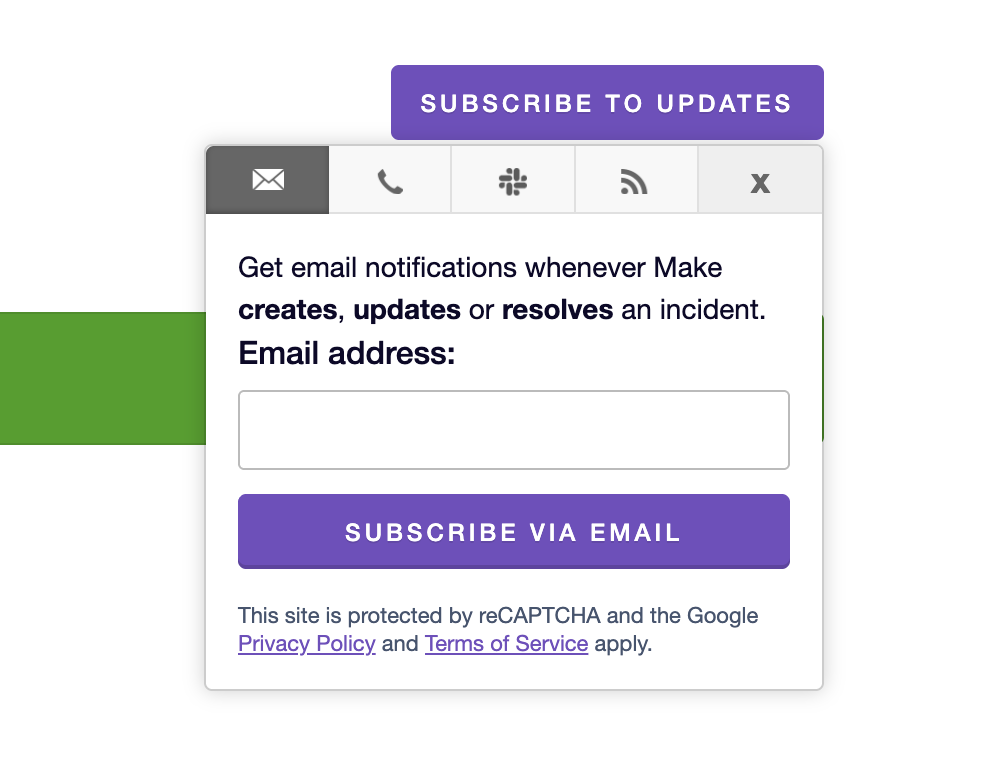 As for notifications, we recommend subscribing to updates from our Status page. That way, you’ll get email alerts about any outages or ongoing issues. Just click the “Subscribe” button on the page and enter your email address to stay informed.