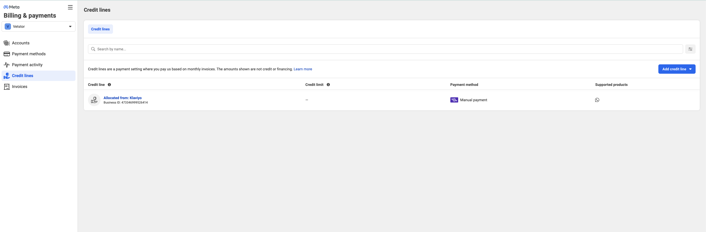 I have connected Make with Meta, but I am not able to send messages through Make.com. It needs Credit line, which I am not able to add. I am adding Make business ID 1970168599919786, but it is not added, it triggers error. What can I do?