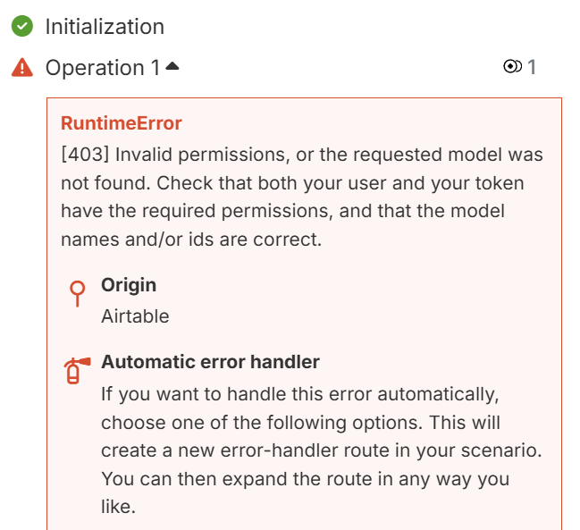 What Airtable plan are you on? If you’re on the Free plan, you’ve likely exhausted your 1,000 monthly calls - this is a common issue with Make scenarios that poll frequently.