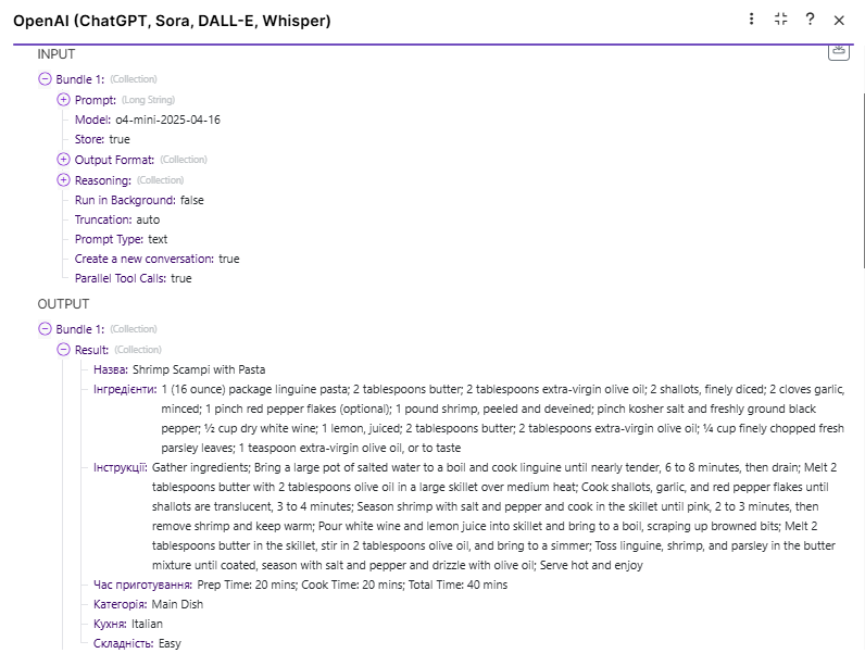It works! I had to tinker with the code for this section a bit, but it all worked out! Now OpenAI provides structured information and I can transfer it further as I need!