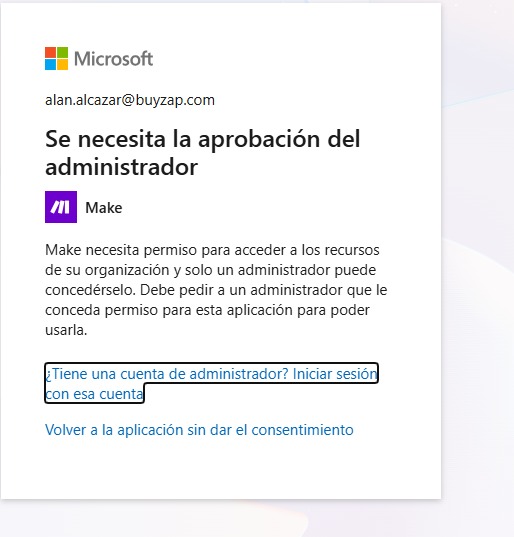 I am not being able to connect excel sheets. This is what it shows when I give my account credentials. How can I resolve this?
