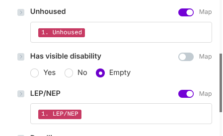 If it needs to be Yes for example, then it will be something like switch(1.Unhoused;True;Yes;No). Don’t copy paste this as it won’t work, select the function from the menu instead.