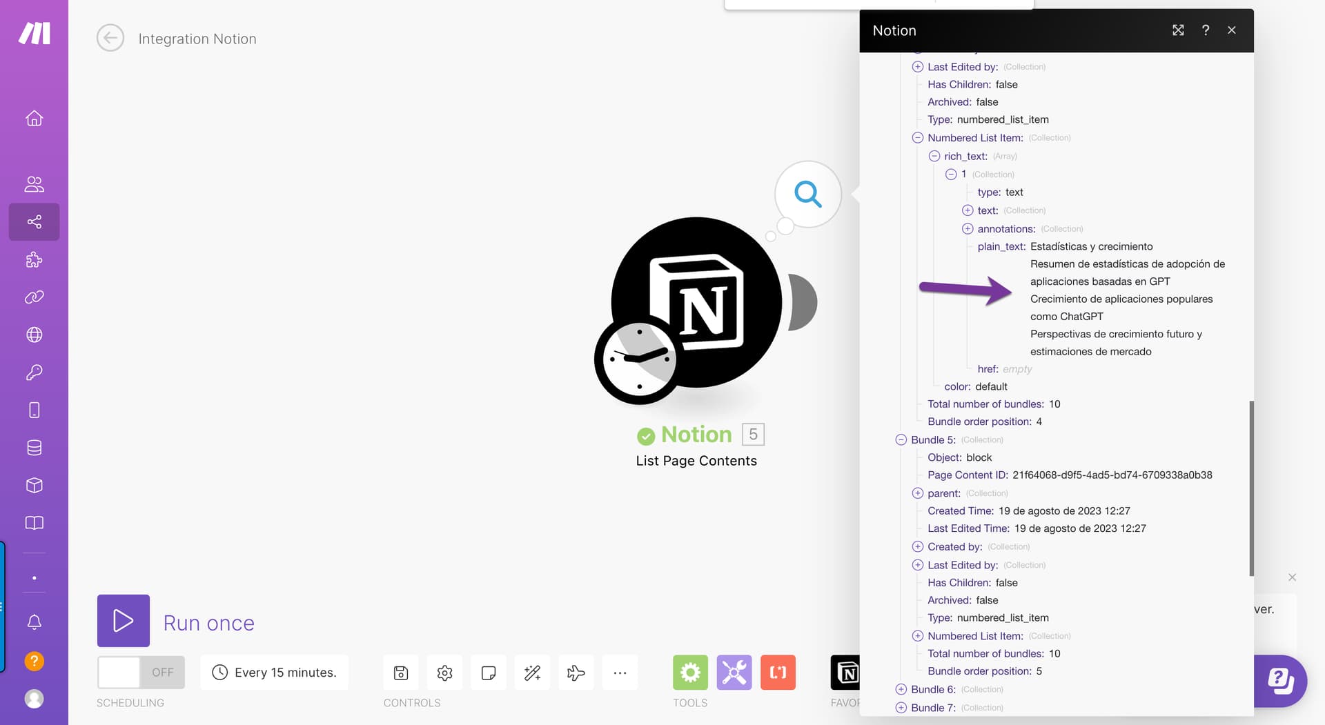 i am think of an iterator for each array / collection / item in the bundle, store it in a variable and repeat the process until reaching the total number of bundles and aggregate all variables to a new final “content variable”.