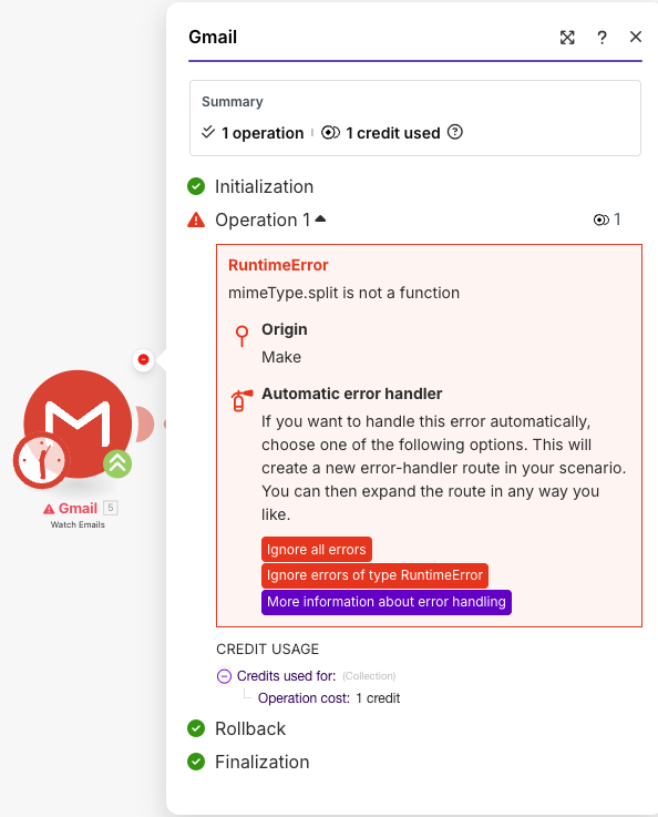 can you show some screenshots of the scenario? The error, the module setup and what the incoming data looks like?