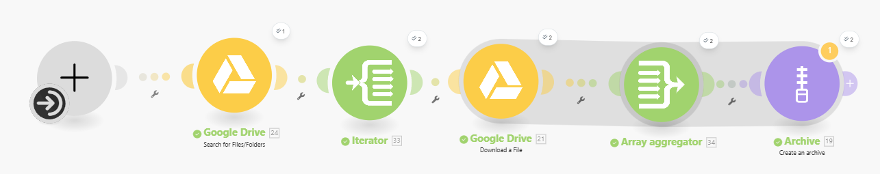 The “Create an archive” module is already an aggregator, so it does not make sense to have another aggregator before it.