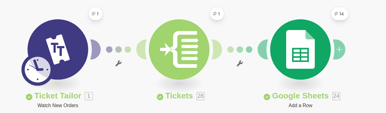 When I receive a new order from Ticket Tailor, take the information from that order and input it on a Google Sheet.