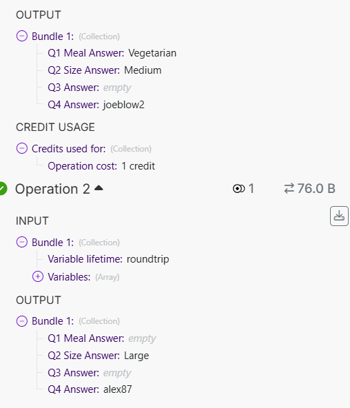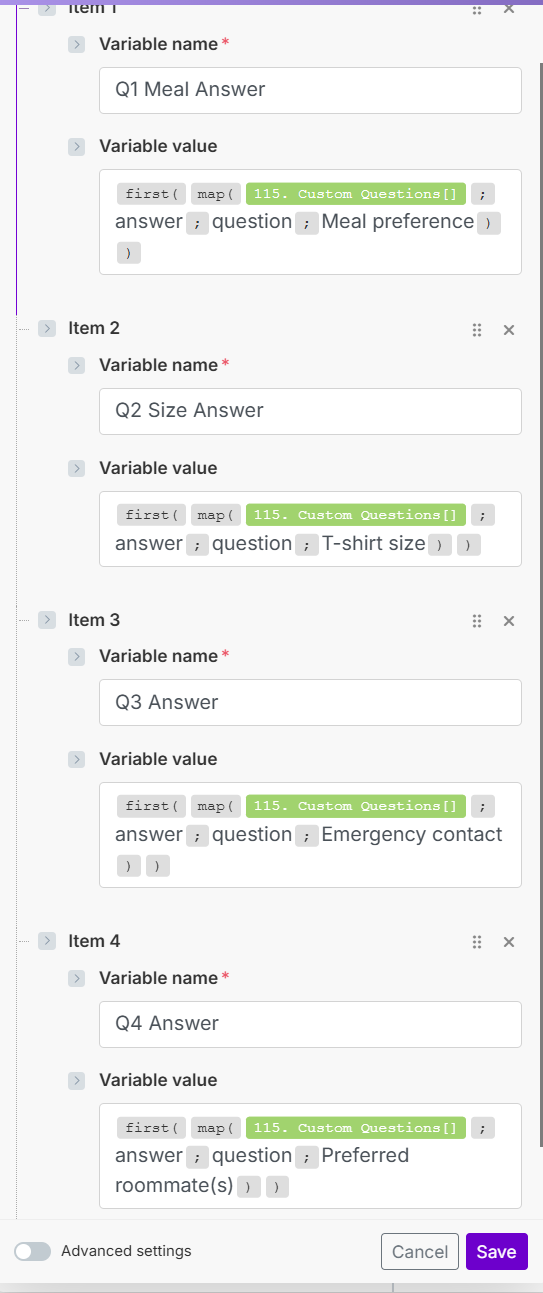 But the outputs under custom questions can vary in quantity based on the type of ticket that was selected.