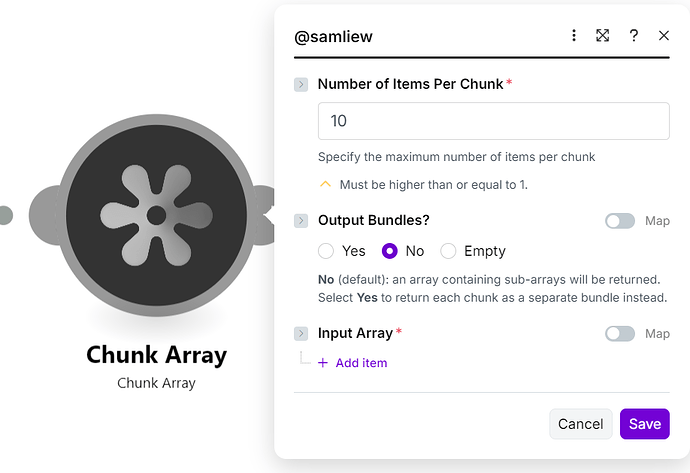 I’ve created a new module for you to perform splitting an array (of anything including collections) into multiple sub-arrays/bundles.