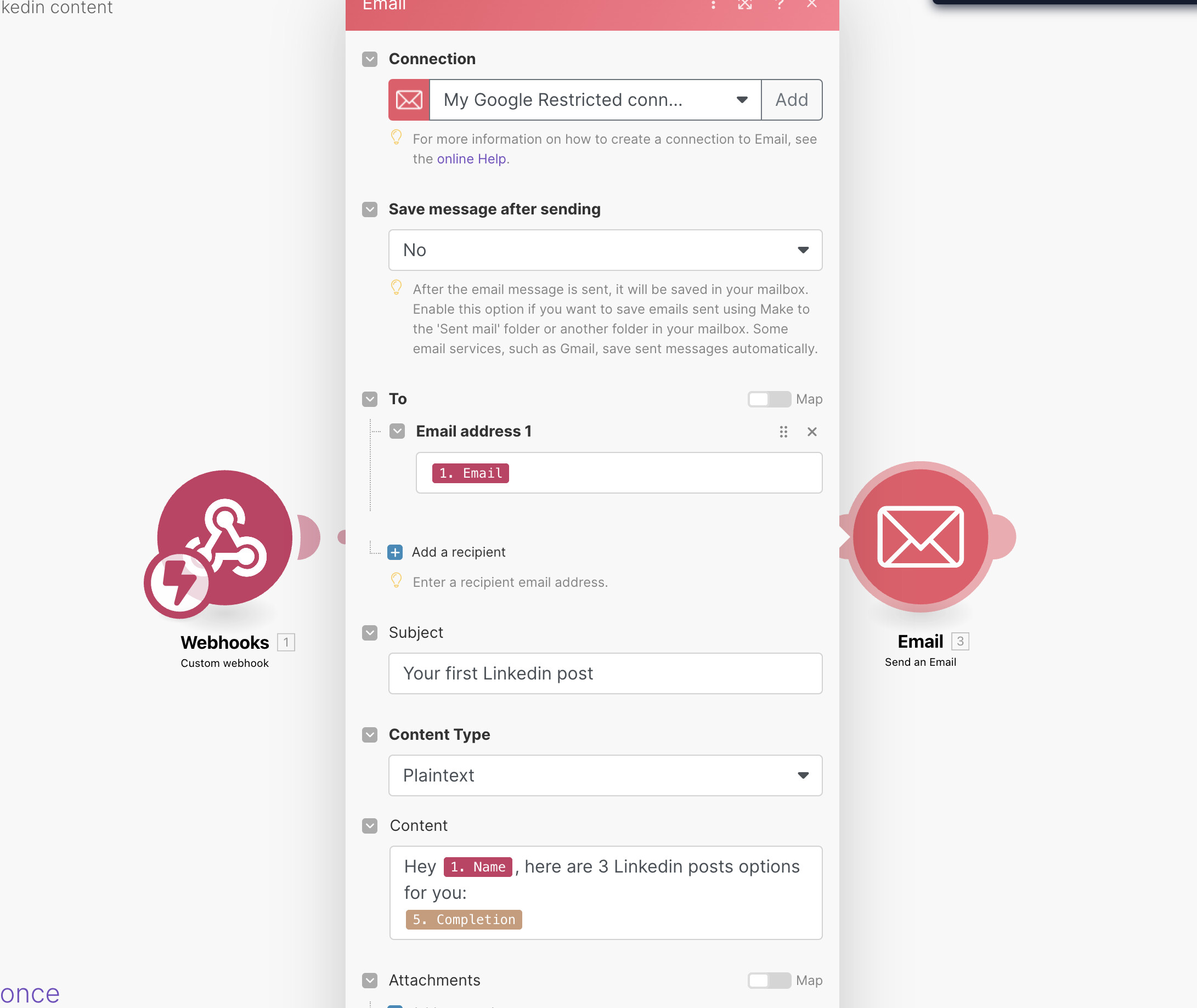 Gotcha, another quick follow-up for you here. I am going through the same issue when generating an output using claude and then trying to send it via email.