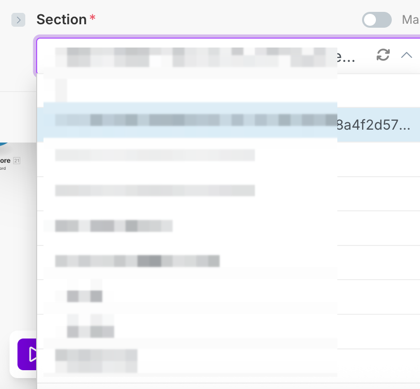 What does the “Section” field look like when the field is unmapped? Could you run the module when it’s manually selected from the drop-down list, and then provide the input and output bundles here?