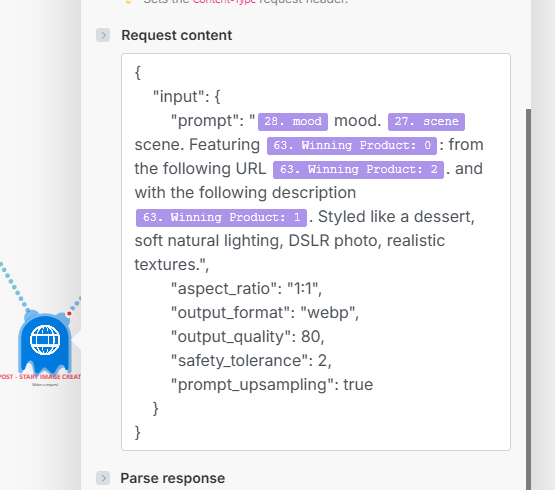 this HTTP POST module (using Replicate to generate image) works without any links, but if i link it to my previous outputs - it gives me the following error.