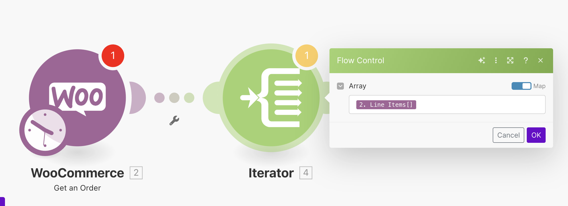 Works just fine with 1 product, but if an order has 2 products it won’t work - It won’t iterate over several products in the same order. It only iterates over the very first product.