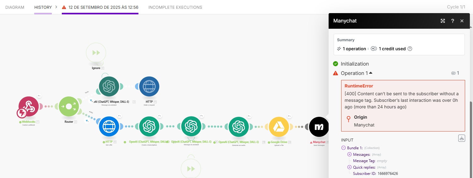 I’m trying to make my AI assistant respond via audio on WhatsApp, read audio and text and respond via text, it already does it perfectly, but I’m having difficulty getting ManyChat to capture the audio generated by the AI and send it to WhatsApp, this 24-hour window error always occurs even if the user starts the conversation, I don’t know what to do anymore…