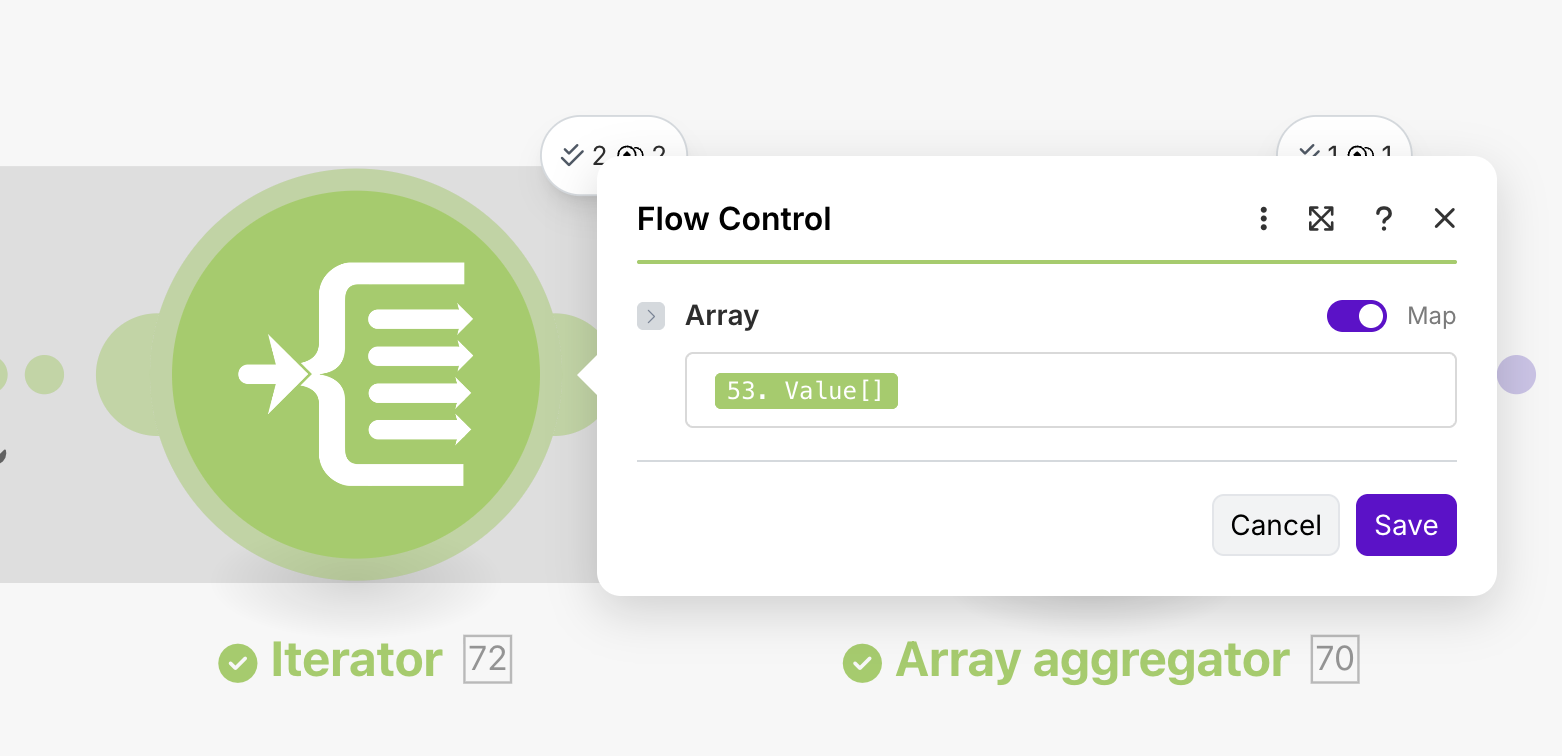 @damato You probably could skip the three middle (Iterator/Aggregator) modules and just use a single “Set Multiple Variables” module.