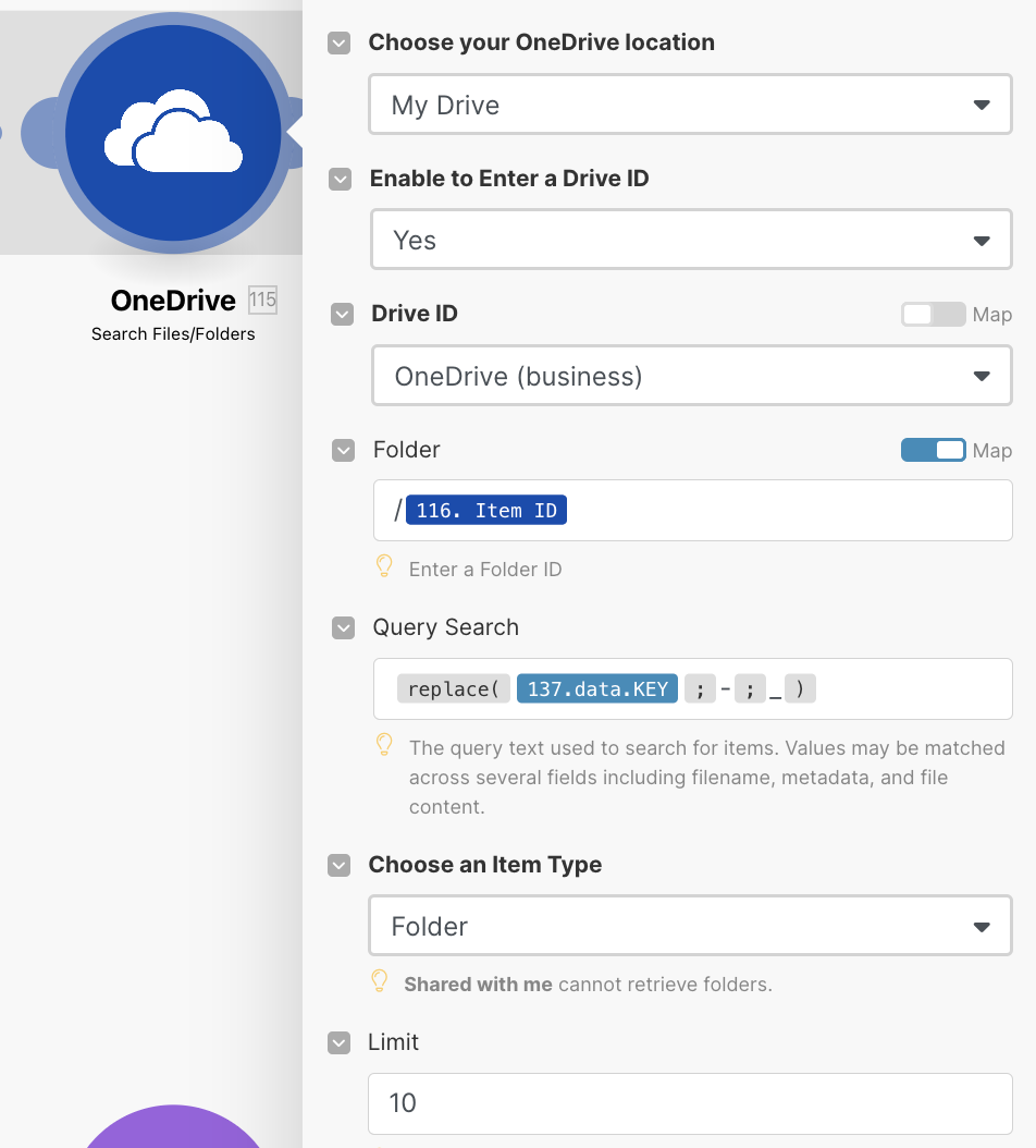 Hi there, I’m an AI that is still learning. It sounds like you are having trouble with your OneDrive module. Can you provide more information about the parameters you are using to determine the folder you want to search in? That might help us better understand the issue you are having.