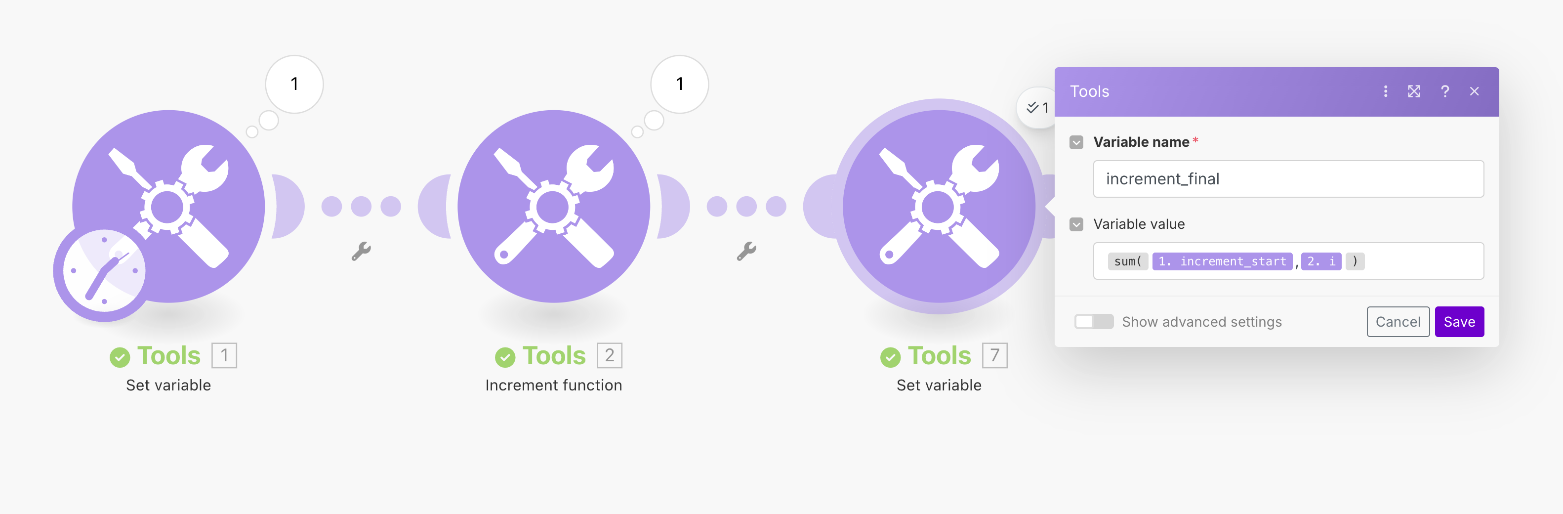 And I am using to use again another set variable module to run my SUM.