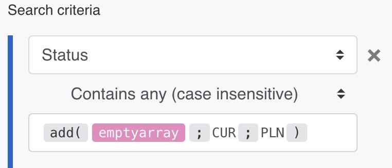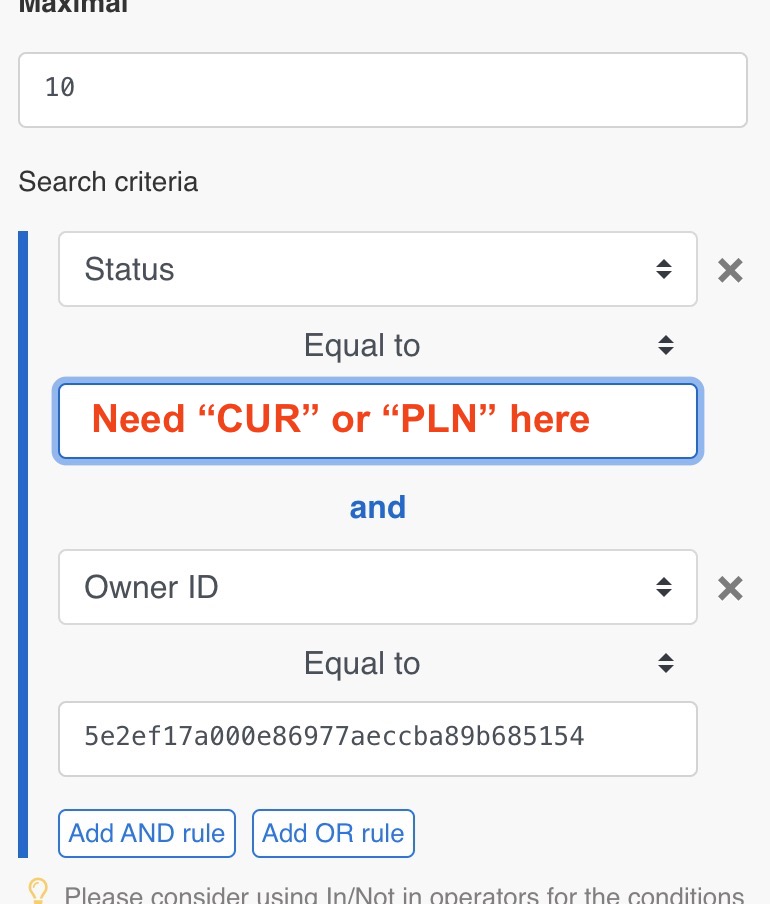I tried the following but it only returned records according to the first entry “CUR”. If I swapped them it still would only return records according to the first entry “PLN”.