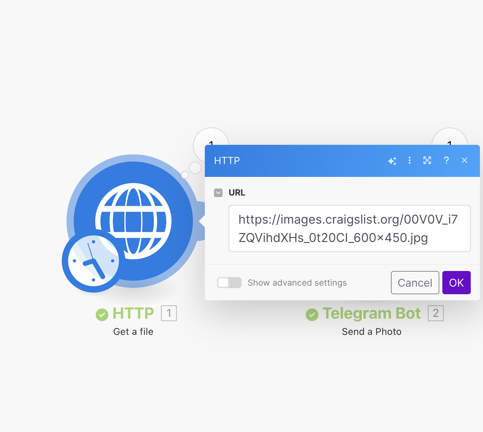 I launched the telegram module separately, using the link I needed and a link from the Internet.