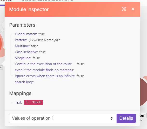 so I created a text parser for each of these regex patterns I mentioned and only one shows up when I use a “set multiple variable” module