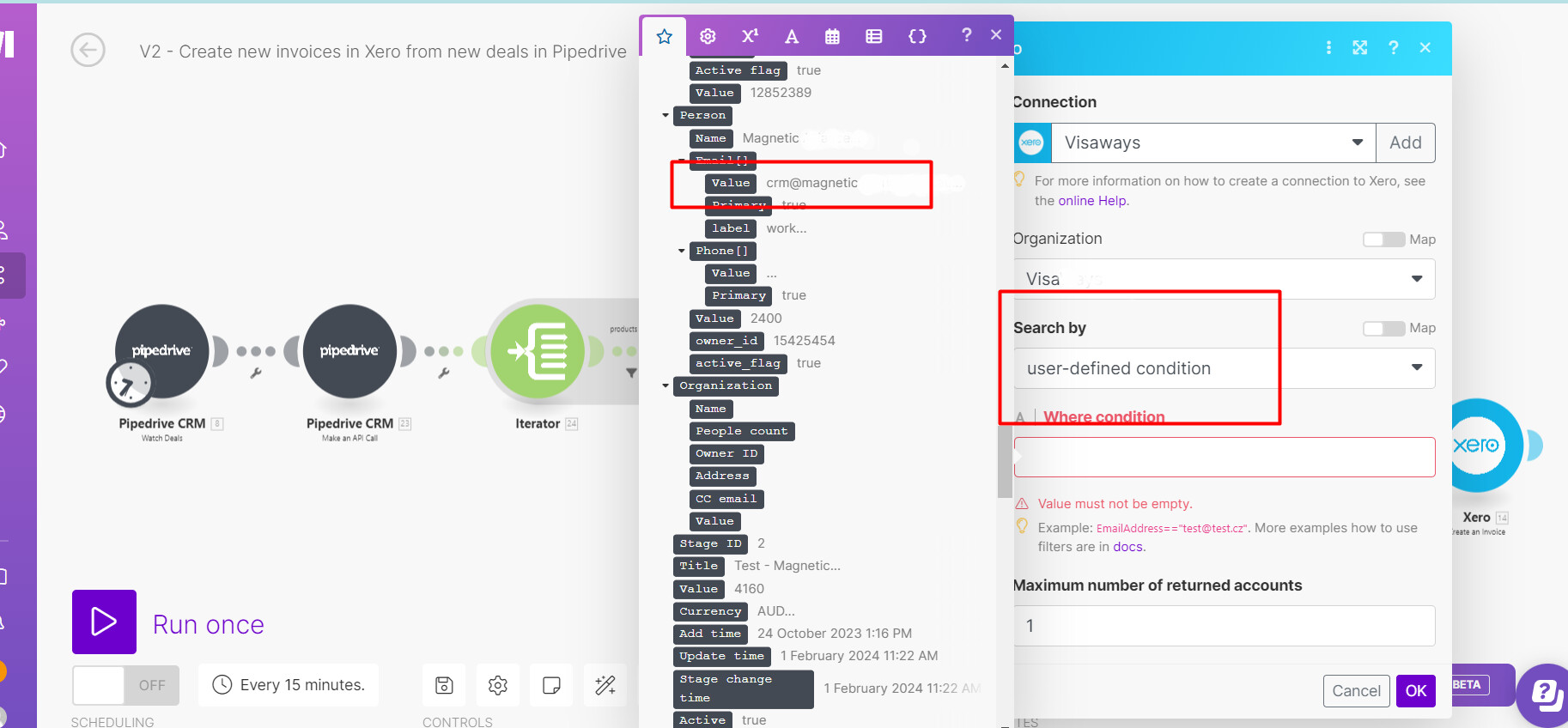 You can then select the mapped field that you’re looking for in the Xero email address.